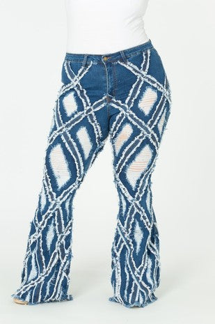 Plus Size Diamond Destroyed Flare Jeans