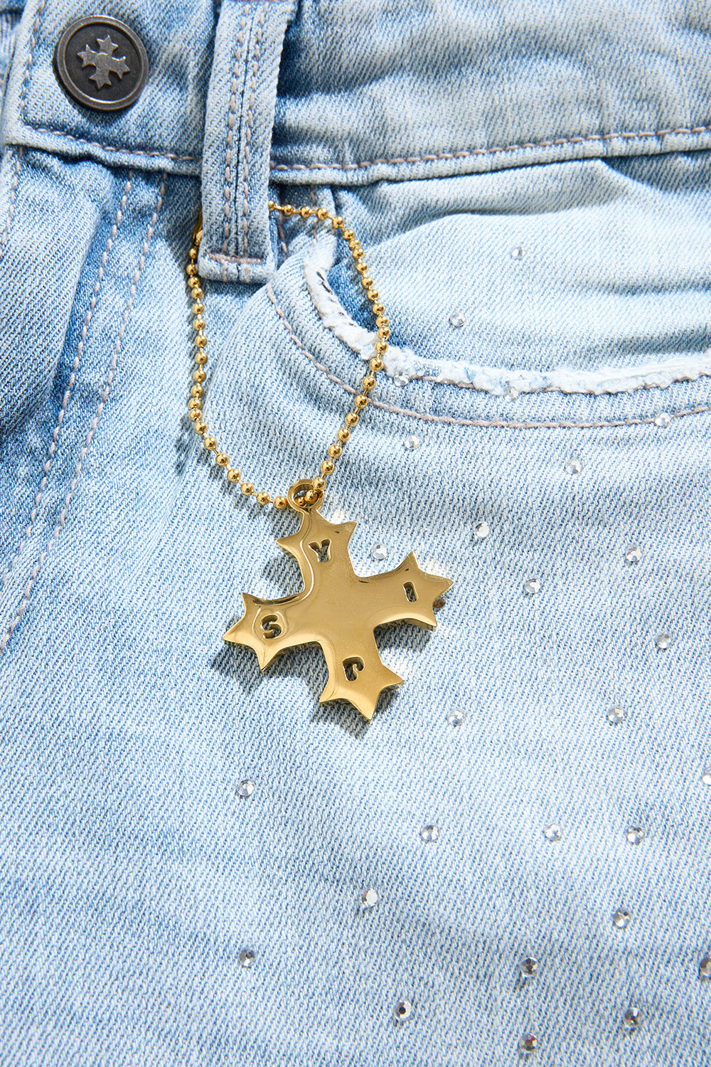 Ice Blue Rhinestone Stacked Jeans